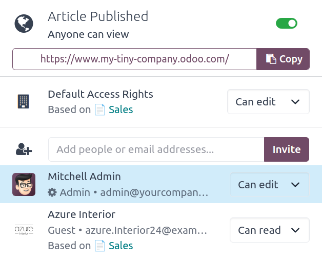 Manage access rights. Choose who gets to see and manage your content. You can even share the page with the world.