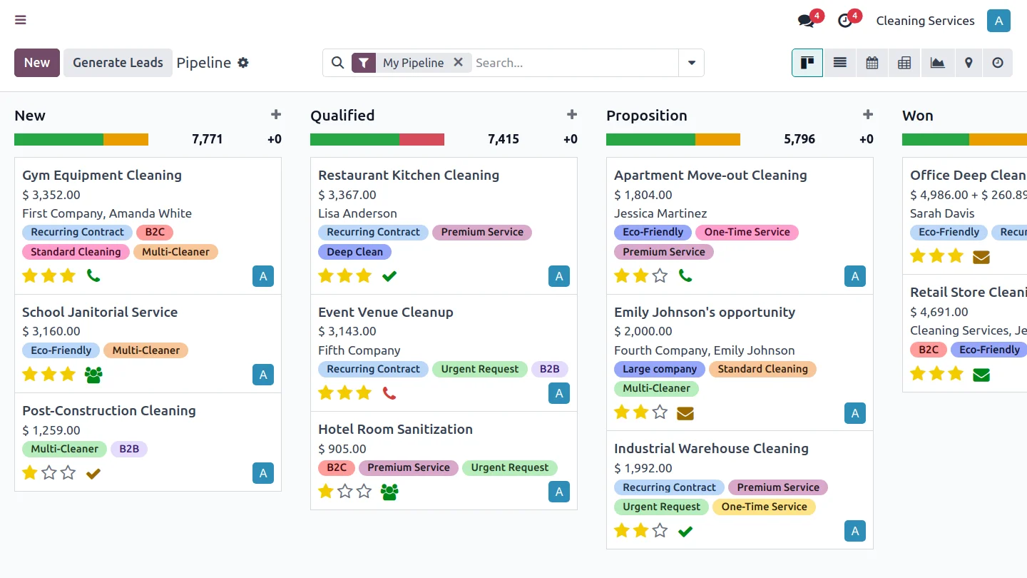 ศูนย์รวมรายชื่อลูกค้าเป้าหมาย ระบบ CRM ของ Odoo ช่วยให้คุณจัดการและติดตามลูกค้าเป้าหมายได้ทุกช่องทาง ไม่ว่าจะมาจากเว็บไซต์ อีเมล WhatsApp หรือช่องทางอื่นๆ