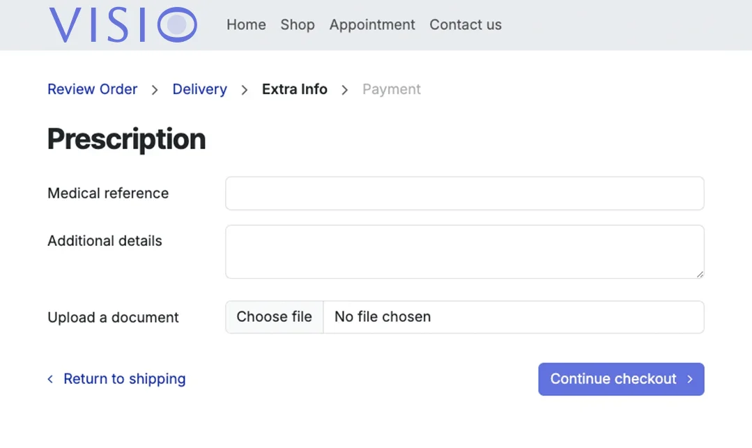 Xử lý đơn thuốc online. Khách hàng có thể mua kính mắt và kính áp tròng online, rồi thêm đơn thuốc của họ trong hoặc sau khi thanh toán.
